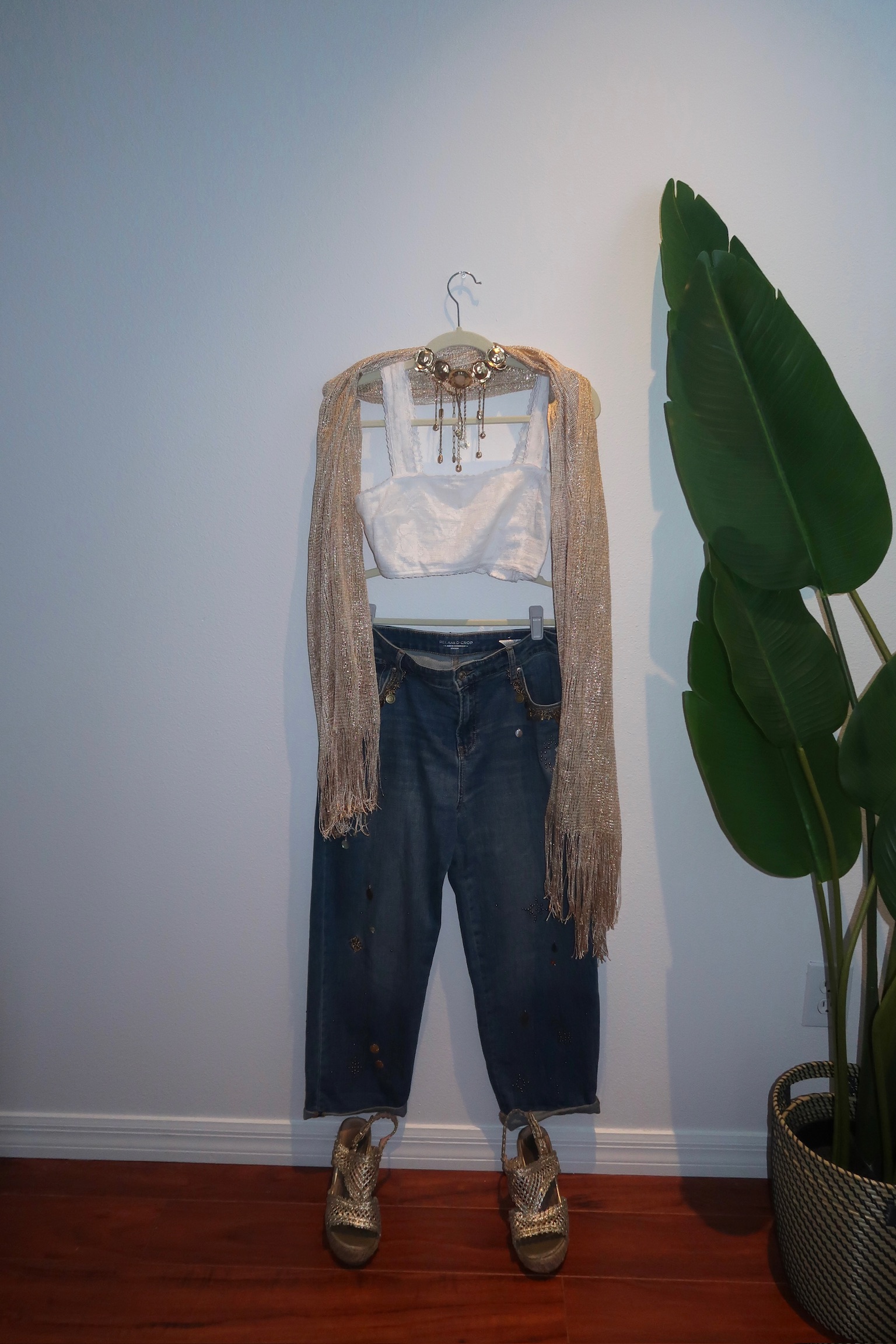 A soft white vintage crop top featuring wide lace-trim straps and a structured, flattering bust. The subtle textured fabric gives it that perfected fit, romantic feel- effortless, feminine, and easy to style up or down. Pair it with denim, skirts, layered gold, or your favorite statement pieces for that undone boho glow. Necklace not included. Scarf & Jeans sold separately.