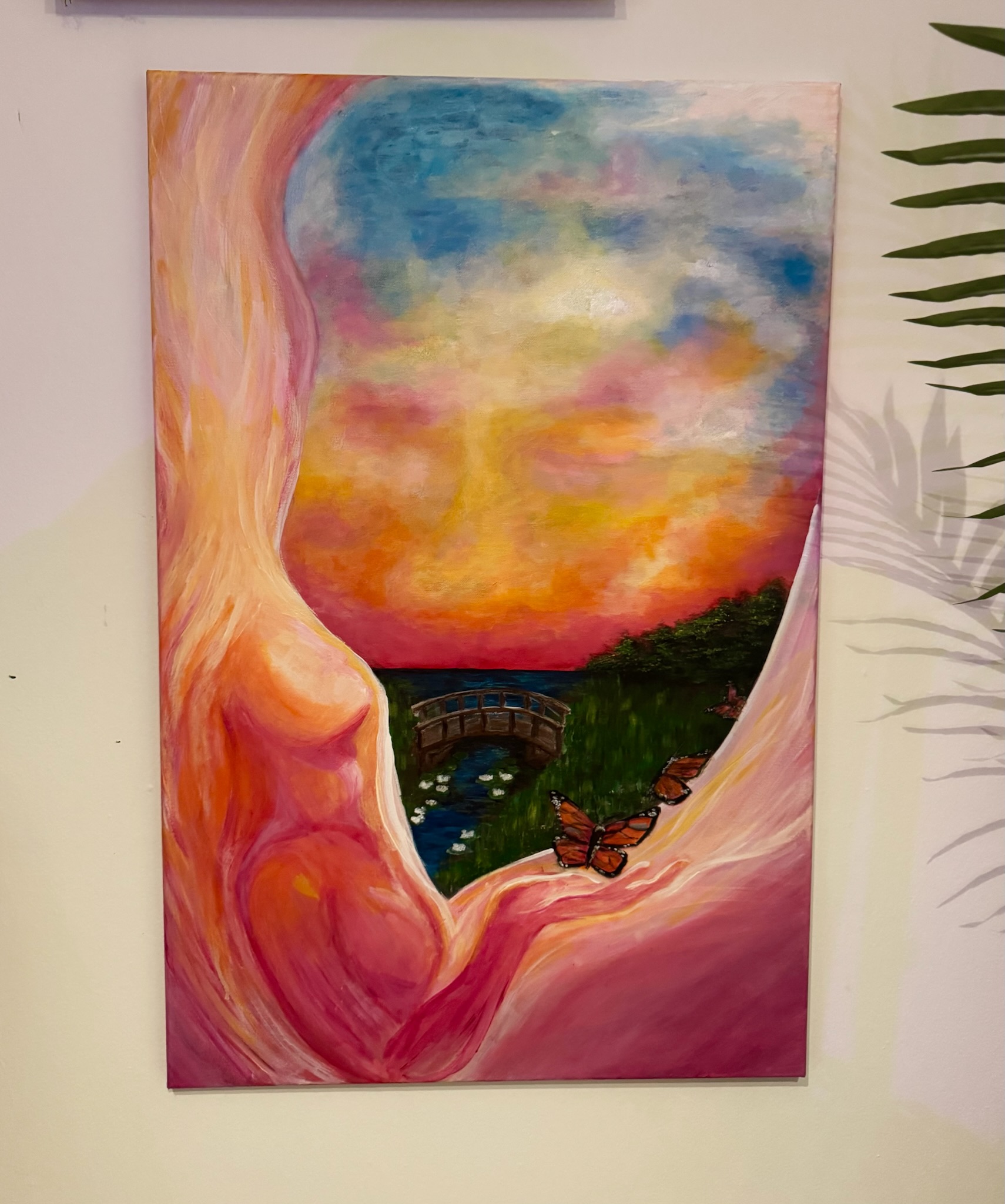 Acrylic on canvas “God in Creation” captures the divine presence woven into the fabric of the natural world. The Lord’s facial attributes are gently blended into the elements of creation—formed through light, sky, and earth—revealing a Creator who is not distant, but intricately involved in His masterpiece. His features are subtle yet sovereign, emerging from the very atmosphere He spoke into being. In the foreground, a figure lifts praise toward the heavens, embodying humanity’s response to divine beauty and authority. The posture of worship reflects reverence, surrender, and awe—reminding us that creation itself points back to its Creator. Layered with intentional texture and depth, this acrylic piece symbolizes the truth that God is both transcendent and immanent: above all things, yet present within them. The blending of form and landscape speaks to Genesis 1:1—“In the beginning, God created…”—and invites the viewer to see Him not only beyond creation, but within its design. This work is a visual meditation on divine artistry: the Creator revealed through what He has made.